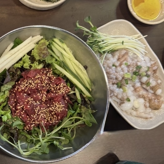 私は、ユッケナクチタンタイ2人前(38,000ウォン)とユッケビビンバ1人前(11,000ウォン)、サンナクチ(タコのみ)1人前(16,000ウォン)を注文しました。