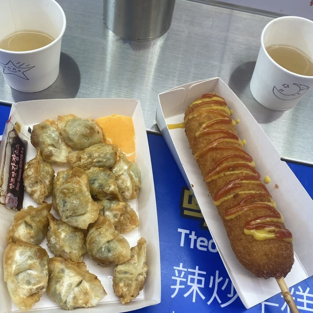揚げゆで餃子(5,000ウォン)とチーズハットグ(5,000ウォン)も!