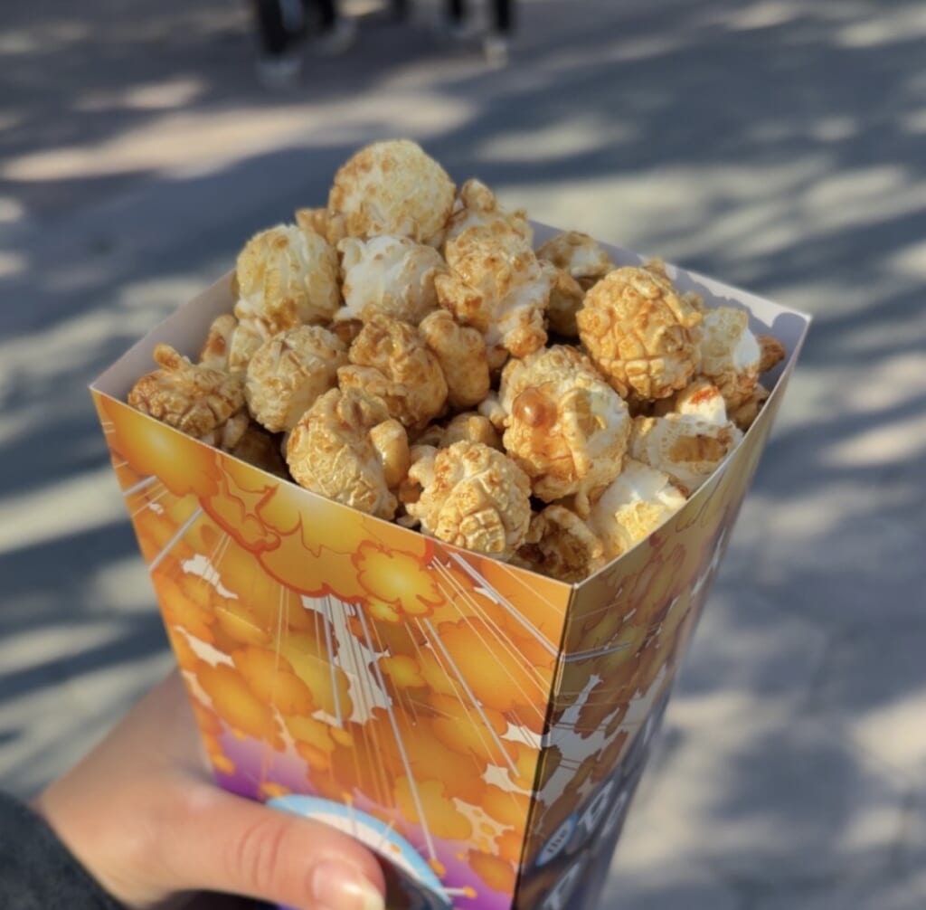 まず食べたのはビッグポップでしか販売されていないソルティキャラメル味のポップコーンです!ビッグポップで販売されているポップコーンは全部大粒で味がポップコーン全体に付いていてとても美味しいです!!個人的には「チェダーチーズ味」がおすすめです!!