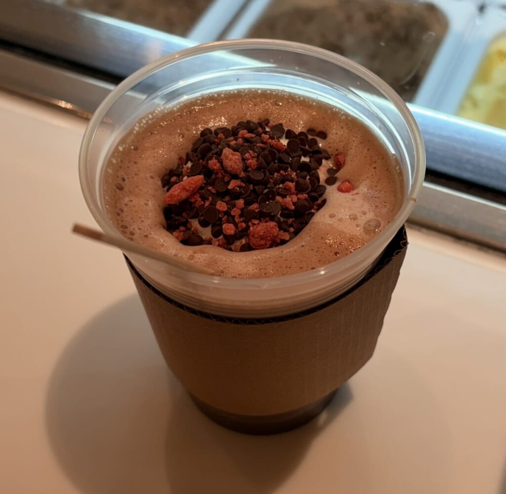 入り口付近にあるアイスクリームコーンで購入できるホットチョコレートは、本当に美味しかったです!!ホットチョコレートを飲みながら見るキャッスルショーはとても幸せで最高でした!!夜に購入したのですが、ホットチョコレートを求める人で列ができていました、!!!