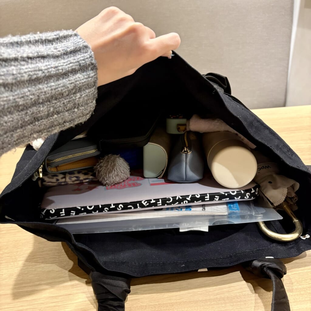 実は入学した頃はリュックで通学していたのですが、夏場は背中が蒸れて暑すぎたのでそれ以降トートバッグ派になりました! 周りの子はリュック派とトートバッグ派が半々くらいです! 1・2年生のうちは荷物が多く、パソコンが入る大きめのバッグを持っている子が多いと思います!