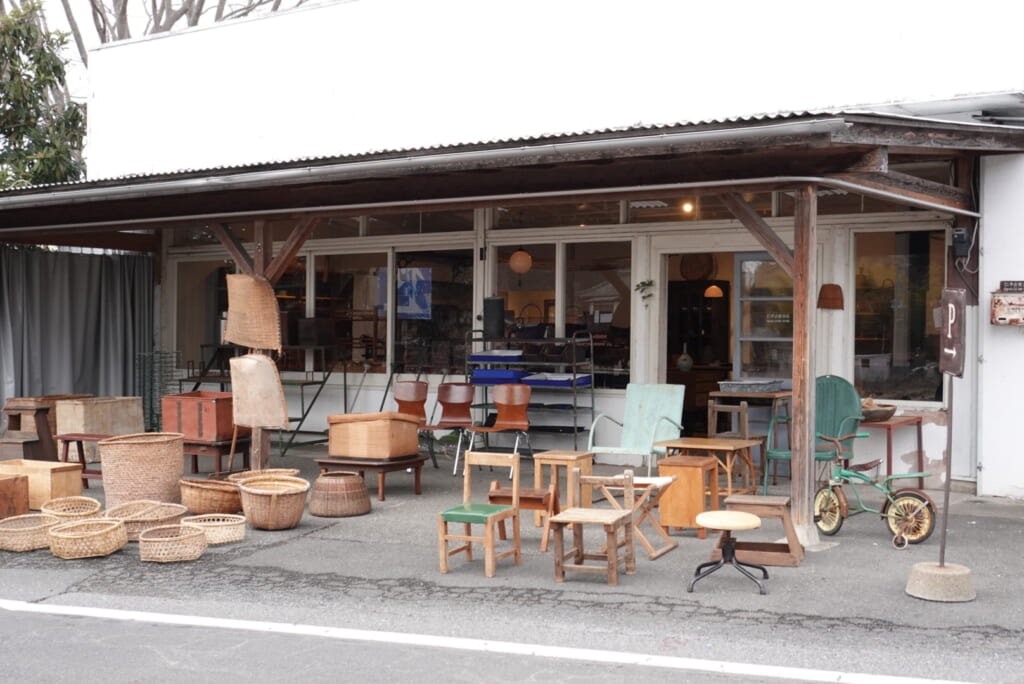 木のぬくもりを感じる棚や、ちょっとレトロなガラスの器、昔の誰かの暮らしをそっと想像してしまう生活道具たち。新品にはない、やわらかな時間の重なりがある古道具を宝探しのように探せるのも、益子の街歩きの魅力です。
