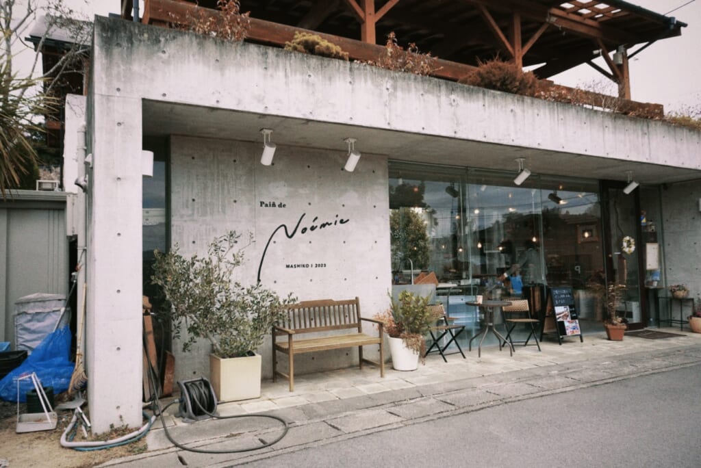 益子参考館から徒歩5分のパン・ド・ノエミ (Pain de Noemie)さん。店内二階がテラス席になっており、益子の田園風景を見渡しながら絶品のパンをいただけます。