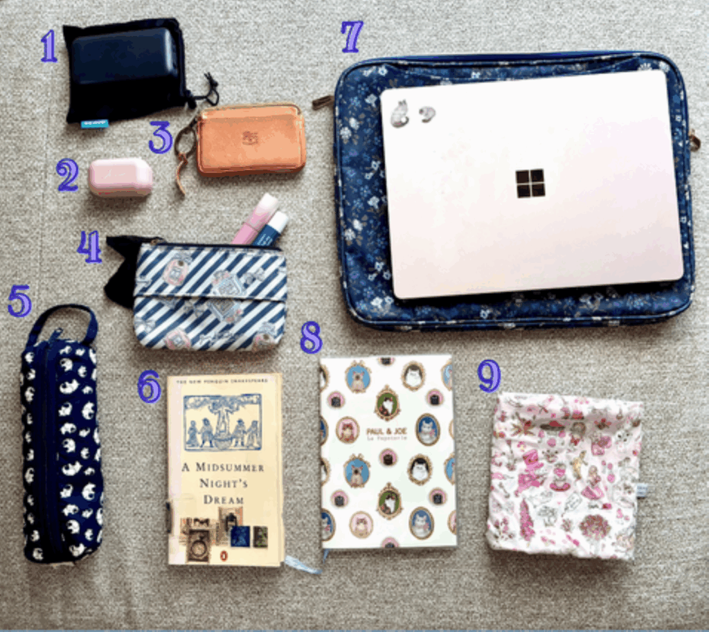 今回は現在、外国語学部の大学4年の私が1日にゼミの授業しかない日の通学バッグの中身を紹介したいと思います。