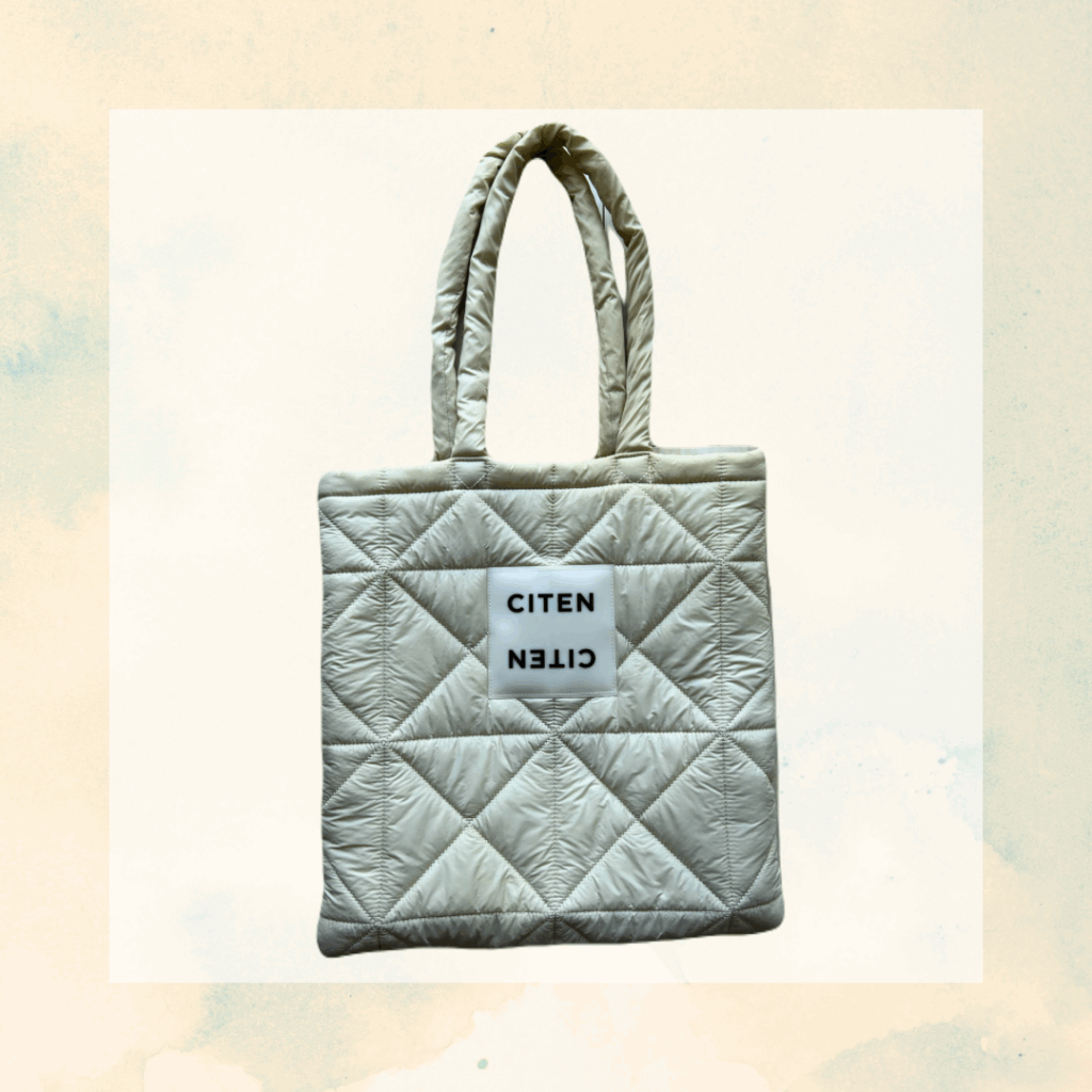 「CITEN」のトートバッグを使用しています。「軽量化にしては、バックが大きい!」と感じる方もいるかもしれませんが、プリントを入れるためのクリアファイルの大きさに合わせています!