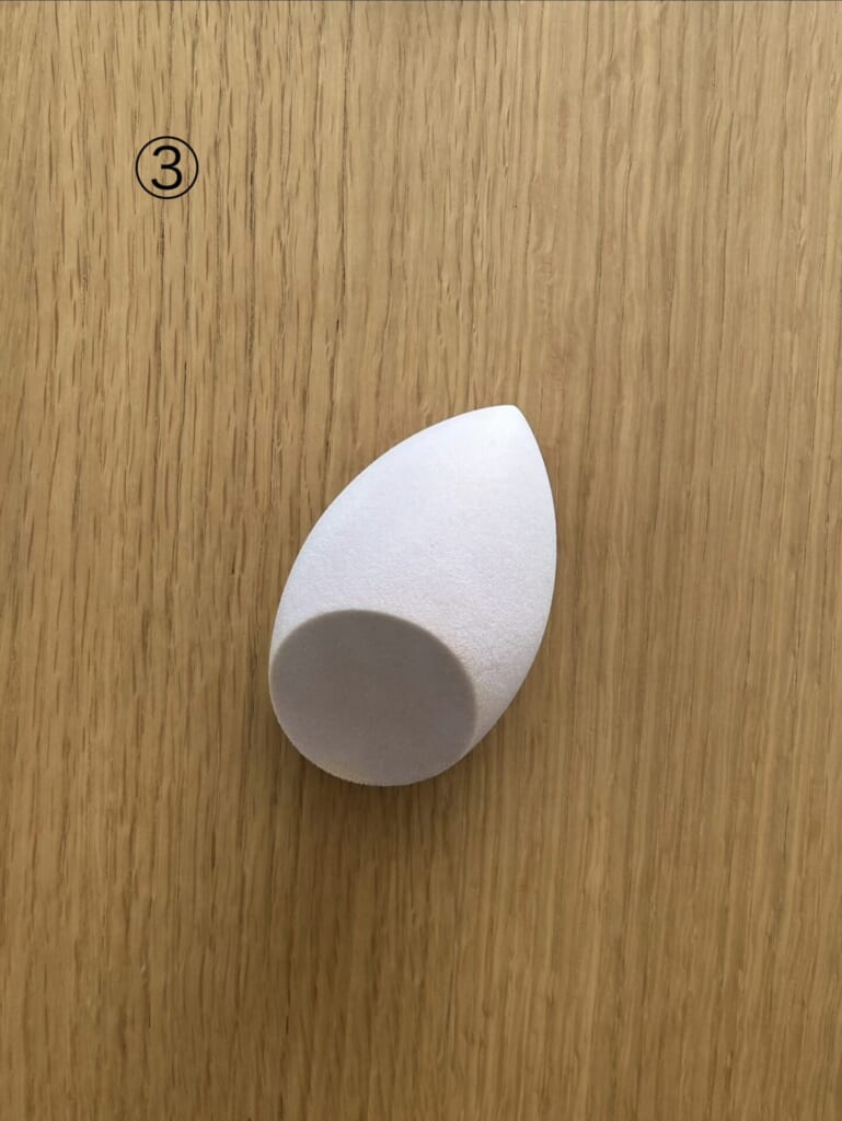 - ファンデは水で濡らせるスポンジを使って顔全体に伸ばすことで、メイク中に乾燥してファンデがもろもろになるのを防ぐ!