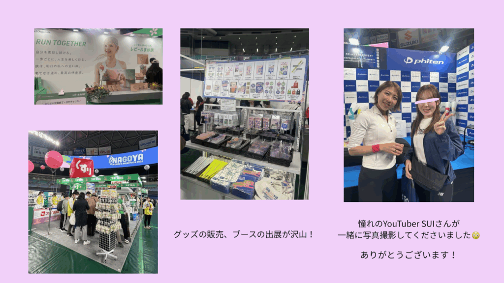 ブースでは、主にランニングや健康に関する企業が出展していました!沢山のサンプルをいただいたり、大好きなランニングYouTuberの方にお会いすることができました♡