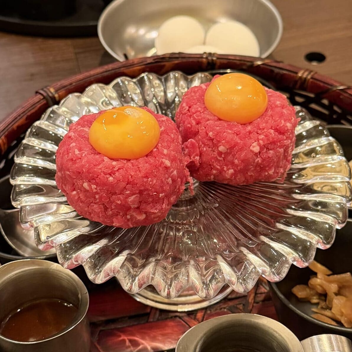 特にオリジナルソースと卵黄は、ユッケとよく合います。