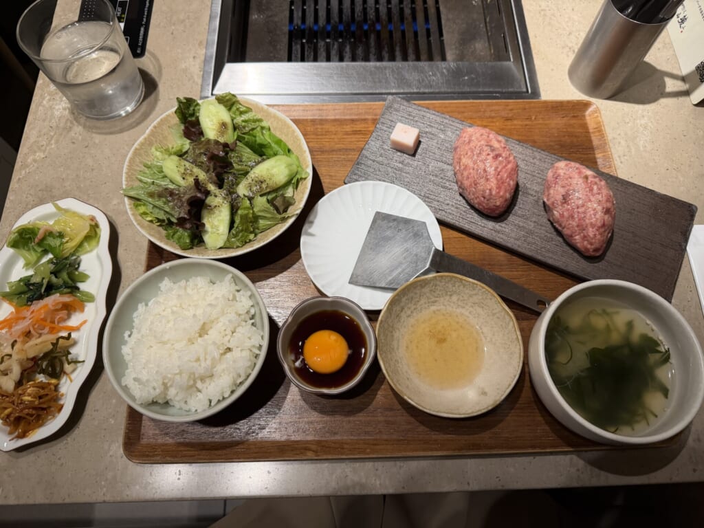 こちらはランチの看板メニューである、自分で焼くハンバーグ。