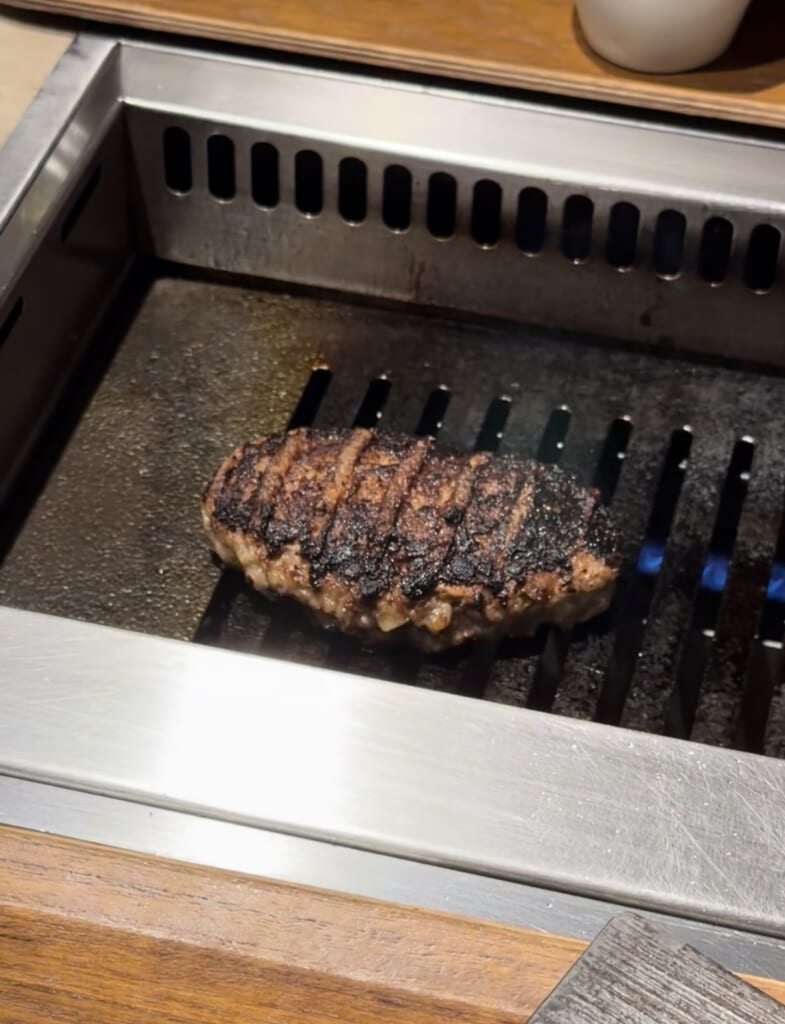 鉄板で、お好きな焼き加減でお楽しみいただけます:)