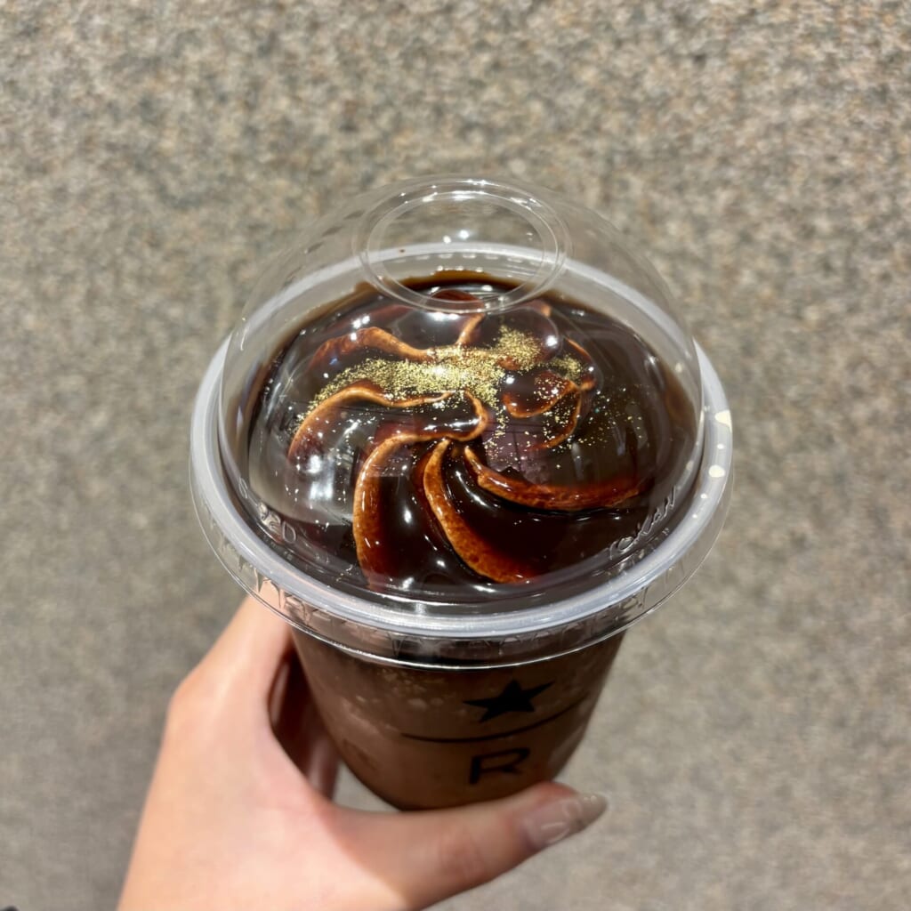 高校生の時バレンタインシーズンにスタバで飲んだ大好きなフラペチーノだったので、また飲めて感激です! 最後にトッピングする金箔も健在でした!