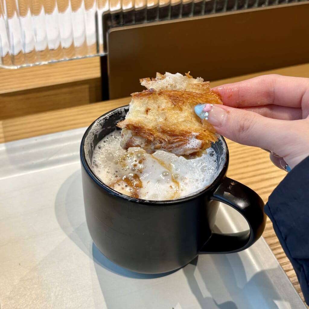 キャラメルメルツラテにつけて食べると、甘みが加わり食感が変わって違った味を楽しめました!