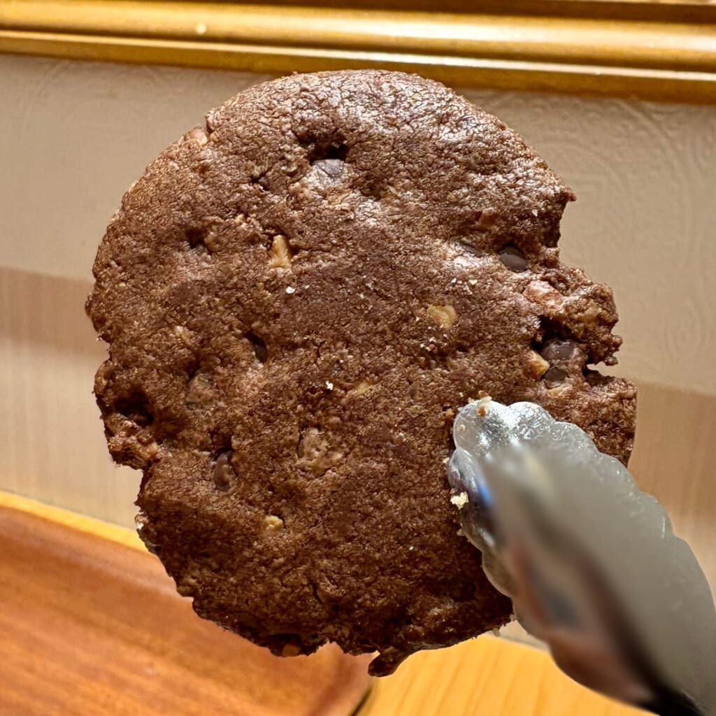 ダブルチョコナッツは深みのあるチョコレート味のクッキー生地が好きな人におすすめのクッキーです! 中にはチョコレートチップとアーモンドが入っていて、食感がとても良かったです!