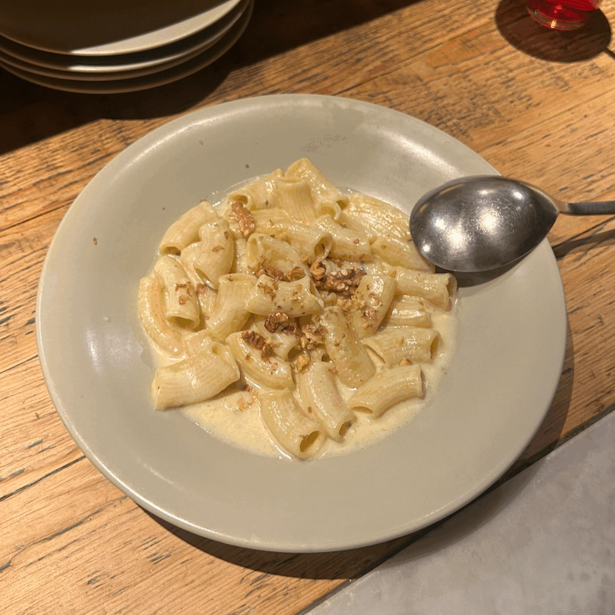 もちもちのパスタに濃厚なクリームソースが絡み合い、とても上品なお味でした🥣
