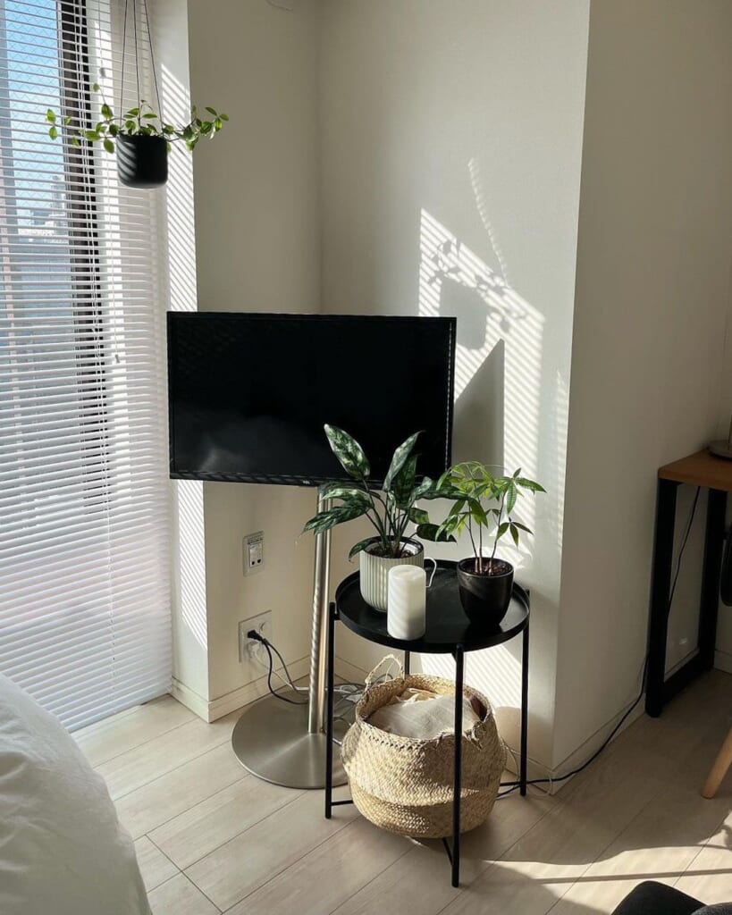 意外かもしれませんが、実際にあまり使っていません。私はスマホやiPadでYouTubeやNetflix、TVerなどを見ることがほとんどです。テレビ台のスペースもかえって部屋を狭くしてしまうことにも…。