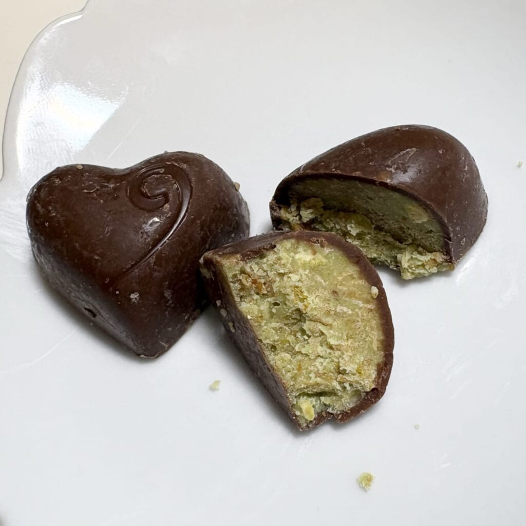 ピスタチオの部分のしょっぱさと周りのあまいミルクチョコレートの組み合わせが最高です!!