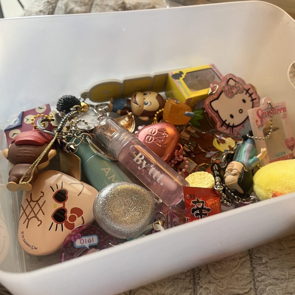 チャームって細々していて失くしてしまったり収納も大変ですよね、。様々な収納方法があると思いますが私は「ラク+失くさない」をモットーにこのような大きな箱で一括管理しています笑綺麗に並べて収納したいと思ったりもしましたが結局この収納に辿り着きました、!