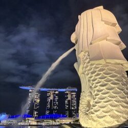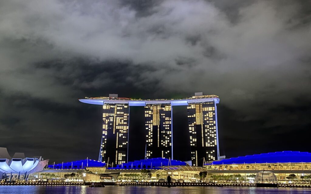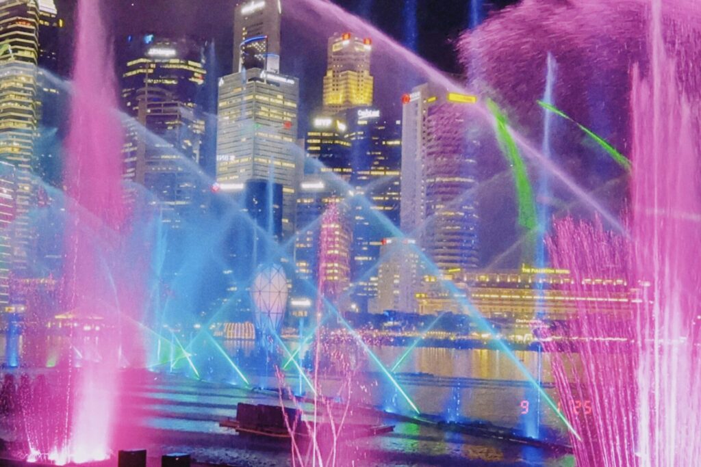 マーライオンの景色はこのようにとても綺麗です!夜に行くとマーライオンと一緒にマリーナ・ベイ・サンズをはじめとした夜景を楽しむことができます!暑い昼に訪れたら、マーライオン付近のお店でマーライオンアイスを買うのもおすすめです!