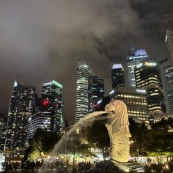 ここで、シンガポールのアイコンであるマーライオンです。マーライオンは「思ったより…」という噂もありますが、そんなことありません!どっしりとしていて、思い描いていた通りの美しい景色でした。昼見てもよし、夜見てもよしなので2回行くのがおすすめです!