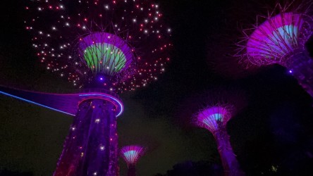 ガーデンズ・バイ・ザ・ベイのアイコンはやっぱりスーパーツリー。昼に見ても夜に見ても圧巻です。スーパーツリーといえば、夜に開催される「ガーデン・ラプソディ」は必見ですね。上記のような様々な色にツリーがライトアップされ、音と光で楽しませてくれます。時間は15分ほどで、19:45~と20:45~の2回開催されます。ギリギリに到着しても、スーパーツリーのエリアの地べたに座って十分に楽しむことができました。ツリーの上部に設置されたOCBCスカイウェイから鑑賞してもよいですね。