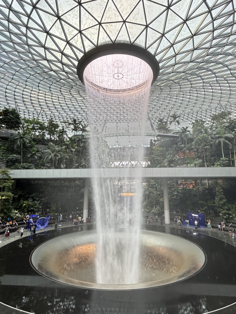 チャンギ空港の見どころといえば、この滝です。ジュエルという空港に隣接する商業施設にそびえるこの滝は、旅の始まりを大いに盛り上げてくれます!