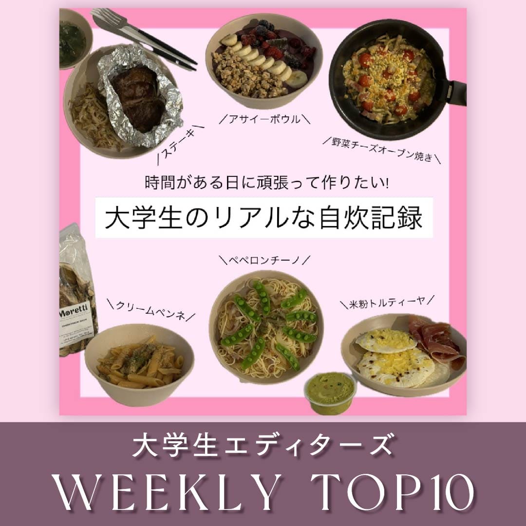 【 大学生エディターズ・WEEKLY TOP10】1位は、【大学生 自炊】大学生のリアル! 休日頑張りたい日の自炊記録