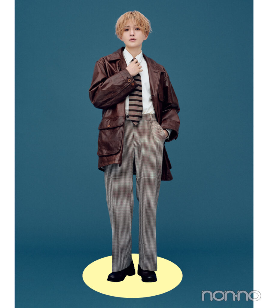 [八木さん]ジャケット¥54780/アームズクロージングストア シャツ¥5940/リメール ストア(リメール) パンツ¥55000/LITTLEBIG 靴¥99000/パラブーツ青山店(パラブーツ) ネクタイ/スタイリスト私物