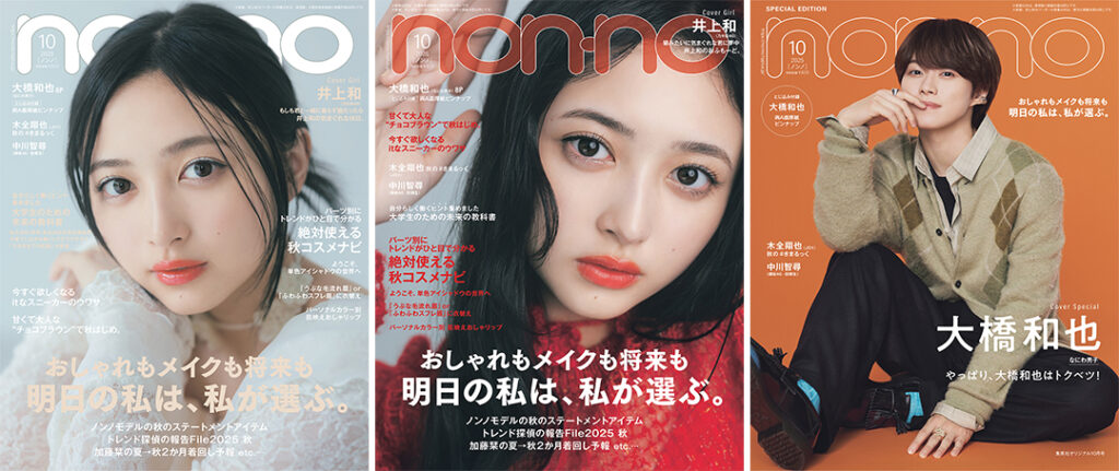 8月20日(水)発売の『non-no』10月号は、井上和が通常版と増刊にカバーガールとして登場。乃木坂46のサイリウムカラーをイメージした2種類の表紙をお楽しみください!