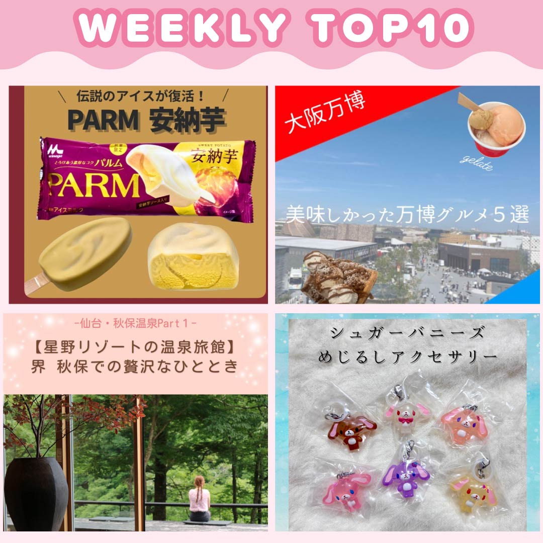 パルム安納芋、大阪万博グルメ5選、星野リゾート 界 秋保での宿泊レポ…【 大学生エディターズ・WEEKLY TOP10】