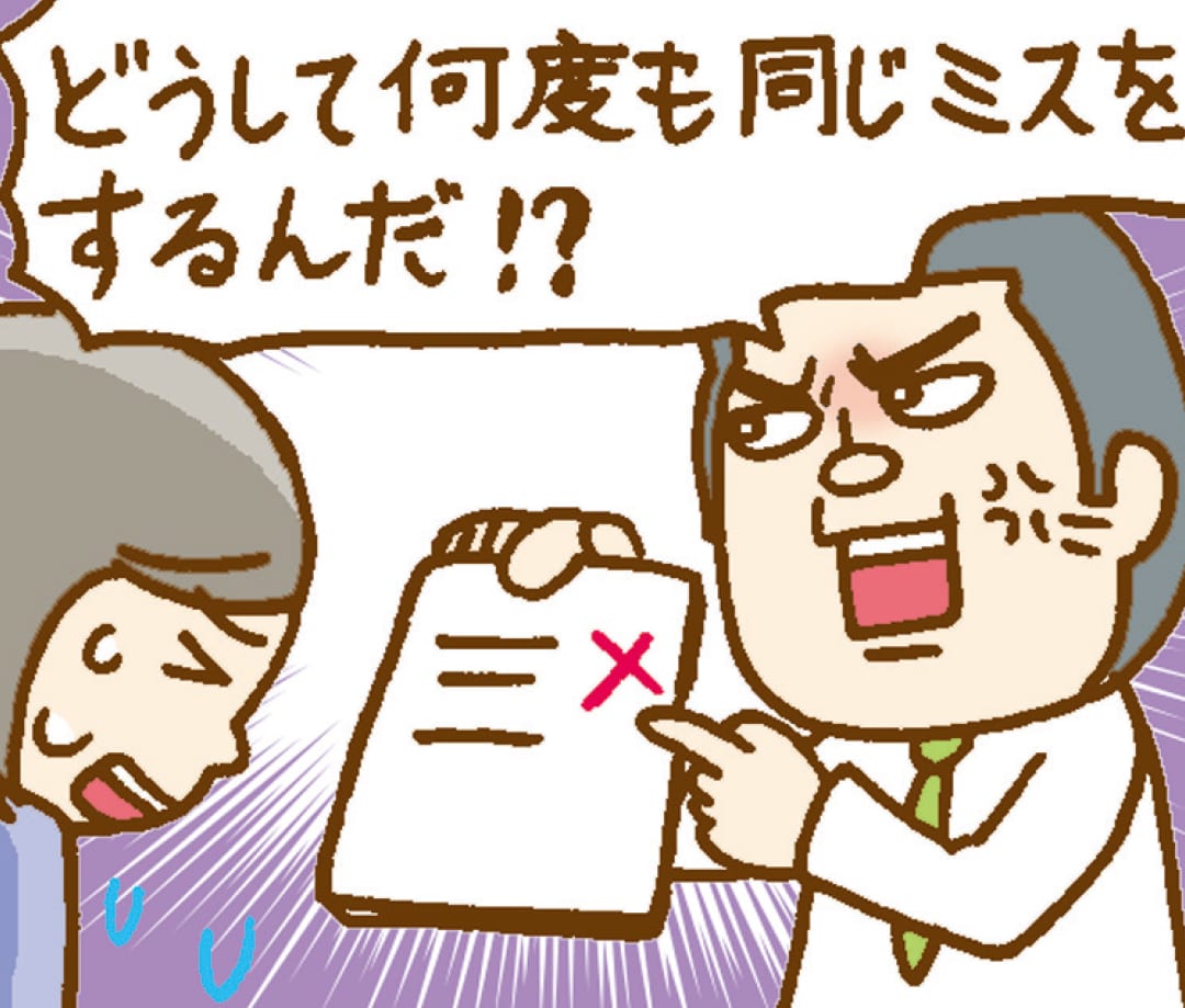 事務のアルバイトでの書類作成で、以前もミスをした箇所で同じミスをしてしまい「なぜ何度も同じミスをするんだ!」と先輩に怒られてしまった……