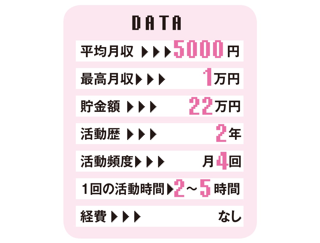 「動画配信で自己PRをする機会があったことから興味がわき、ライバーをやってみることにしました。今は週に2回ほど活動中。1回20分の配信を時間を空けて数回行います。ギャラはリスナーさんからの課金(ギフト)。総額の1~2割ぐらいが配信会社から振り込まれます」。ライバーの仕事は、中村さんの夢ともリンクしているとか。「芸能の世界に興味があるので、動画を通じて、私を応援してくれる人たちがいることがうれしいです。上位配信者になるために、リスナーさんと一緒に笑い、時には一緒に悔し涙を流したり……。貴重な体験をしていると思います」