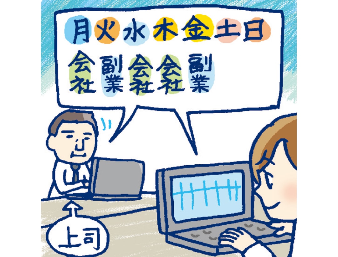 週3日勤務に切り替えても、明石さんは正社員。「副業のスケジュールは、社内で共有しています。今の働き方について、上司に相談することもありますね」