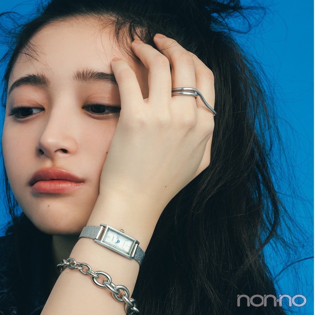 メンズライクなワイドデニムに、あえて体のラインにフィットするシャーリングカットソーをインすることで女らしさをプラス。きゃしゃなストラップサンダルやキッチュなビーズバッグなど、小物も気張りすぎないのがラフ&今っぽく仕上がる秘訣♪