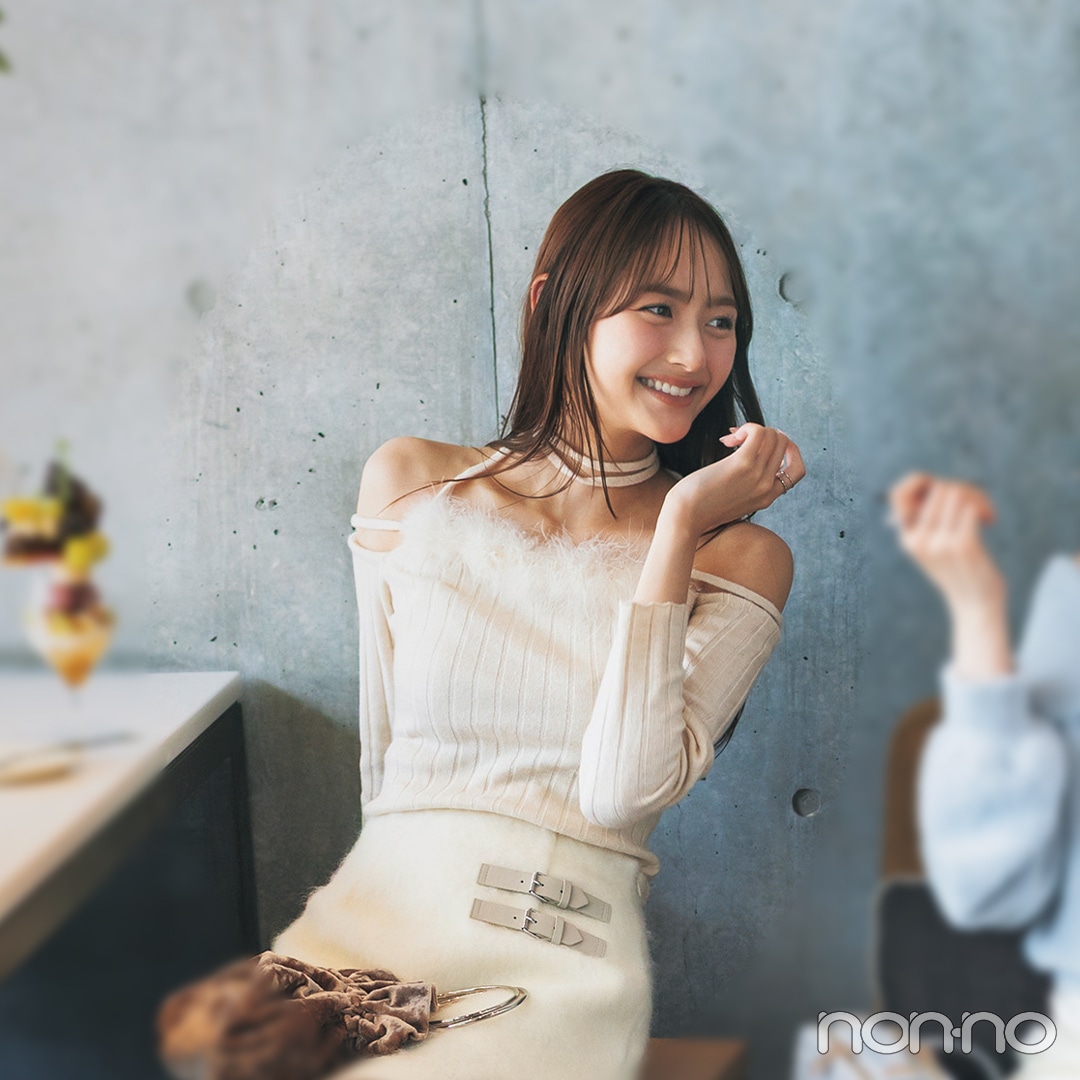 今シーズンはカラーチェックが大ブーム。甘めブラウスやシャツ合わせも素敵だけれど、ラガーシャツ風のカジュアルなミニワンピをトップス風に活用した意外性のある着こなしでしゃれ感を高めて。
