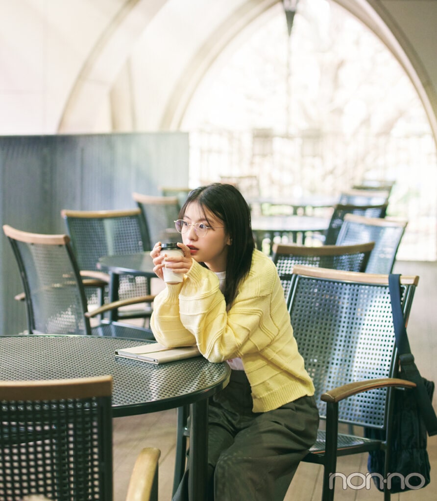 「みんなでだらだらおしゃべりしてるけど、来る?」休講連絡ついでに誘ったら「行く」とだけ、返信がきた。太陽みたいにチアフルなイエローカーデをまとって登場したあの子はラテを片手にご機嫌♪ 恋バナにはしゃぐ無邪気な表情はまるで子どもみたい。