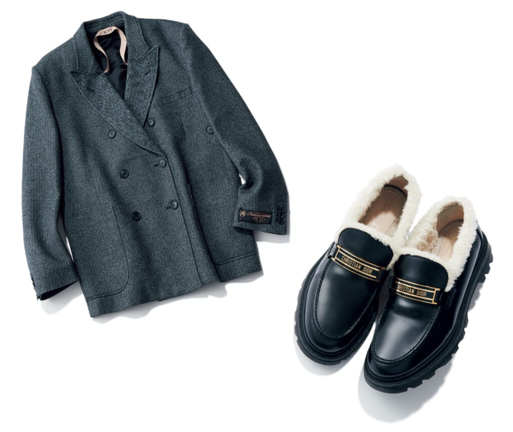 ヌメロ ヴェントゥーノのジャケット、ディオールのローファー(ともに本人私物)