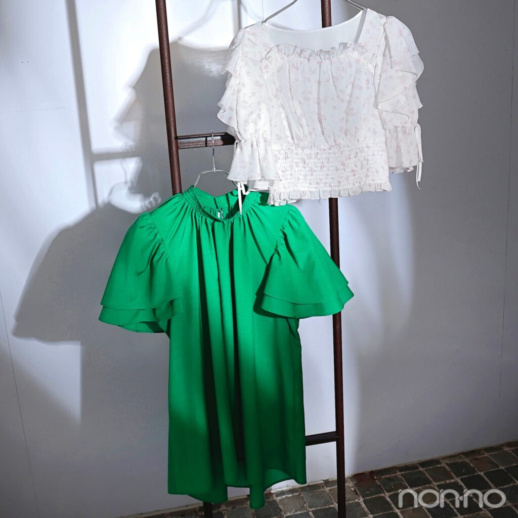 一枚で映える“フリル袖ブラウス”は二の腕カバーの王道!