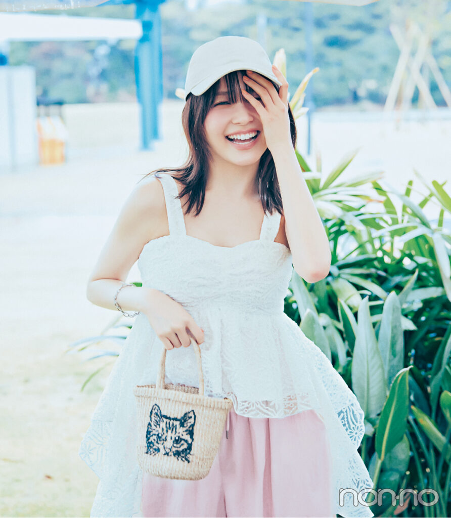 キャミソール¥14850/dazzlin パンツ¥8250/KBF ルミネエスト新宿店(KBF) 帽子¥4620/ニューエラ ブレスレット¥3300/ロードス(ヘンカ) バッグ¥13200/ユー バイ スピック&スパン ルミネ池袋店(BAGMATI)