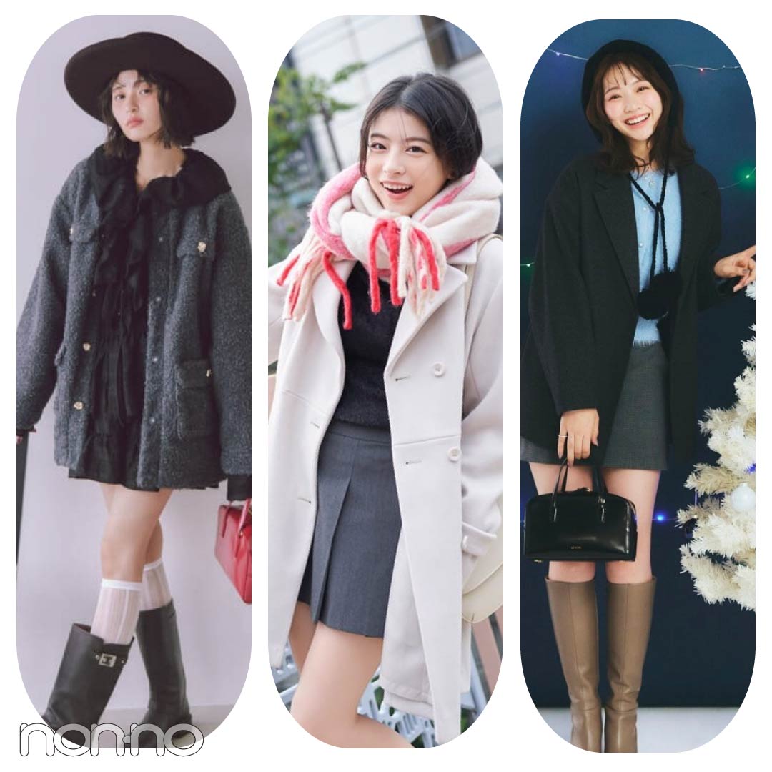 ノンノモデル・遠藤さくらのいろんな着こなしが楽しめる大好評の毎日更新企画。この冬は、旬なアウターコーデをたっぷり30daysお届け♡ フリルがあしらわれたコートが一枚あれば甘カジも思いのまま!