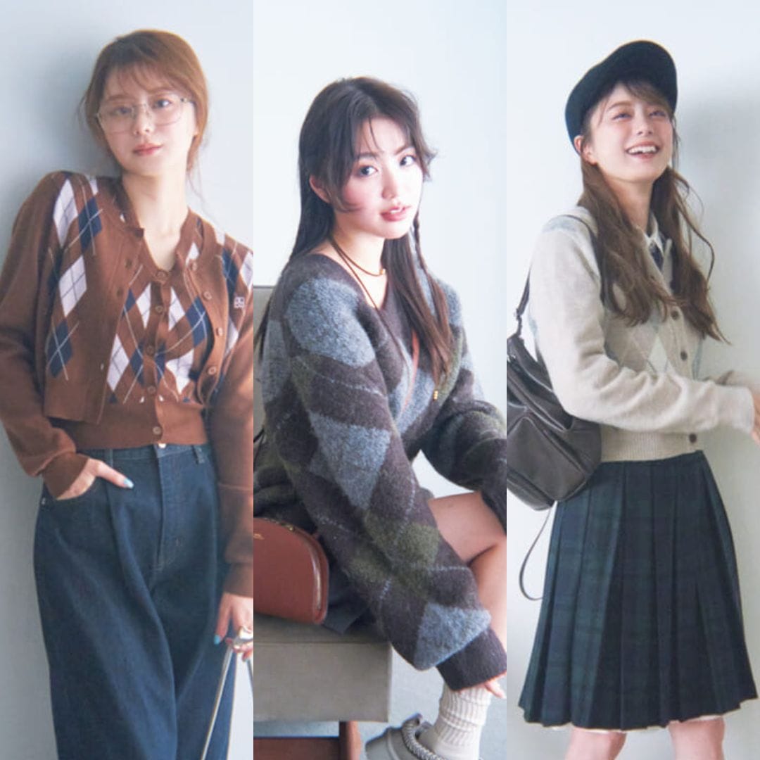 シャツやパンツは、靴以外にアパレルラインも人気のRANDAのもの。白×ミントグリーンの爽やか配色で好感度を高く。シンプルなワンツーコーデは、カーディガンを巻いてこなれ感をプラスして。目線アップの役割にも。
