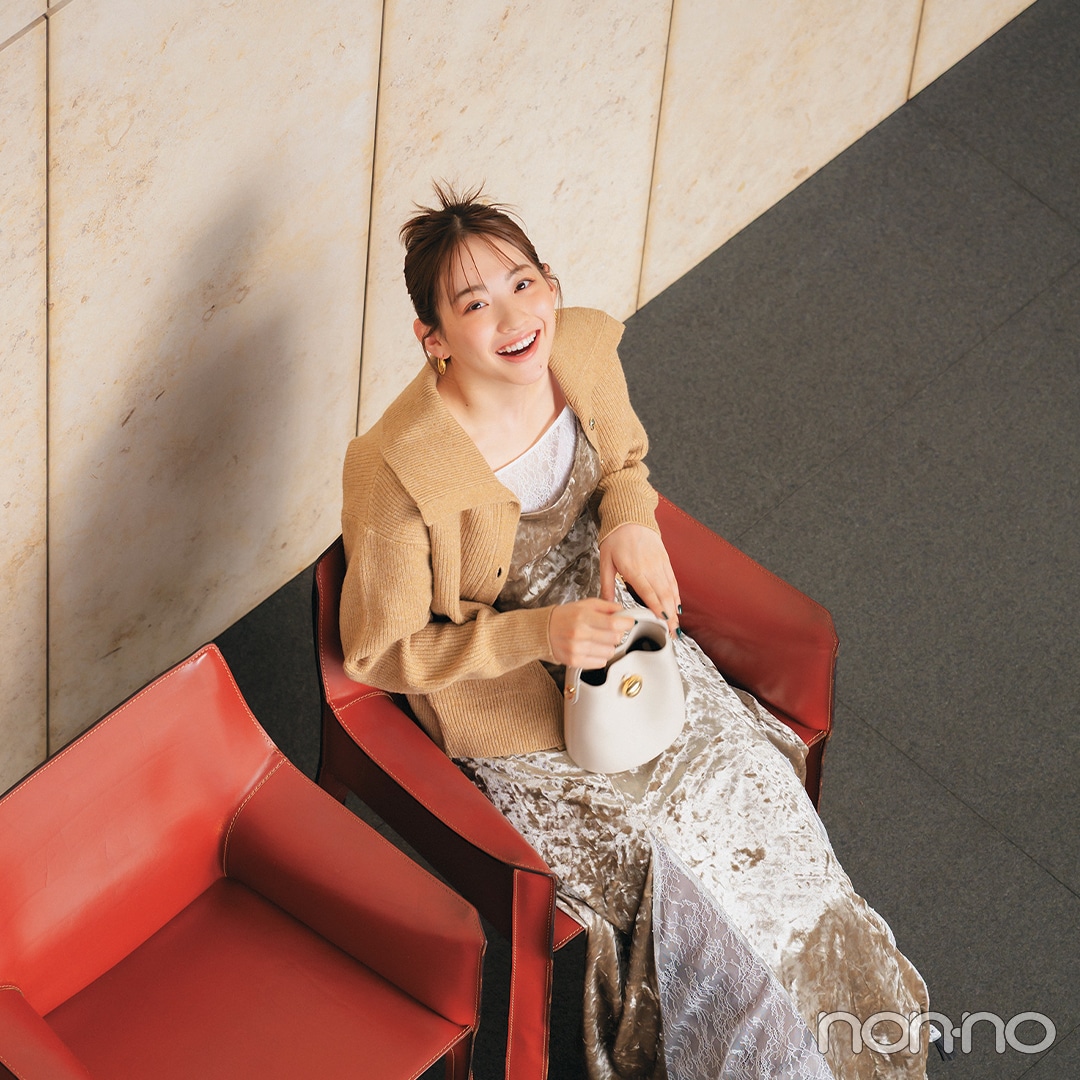 日向坂46小坂菜緒がナビ!シンプルニットとアクセサリーのベストな合わせ方