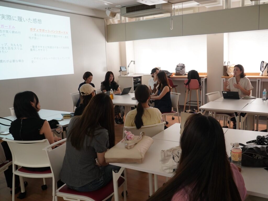 この産学連携プロジェクトは、若年層に向けてガードルの認知拡大と興味喚起を図ることを目指しているそう。2024年5月に始動した本プロジェクトでは、ガードルを着用したことがない学生が多い中、まずは実際にフィッティングを行いガードルの魅力を体感。
