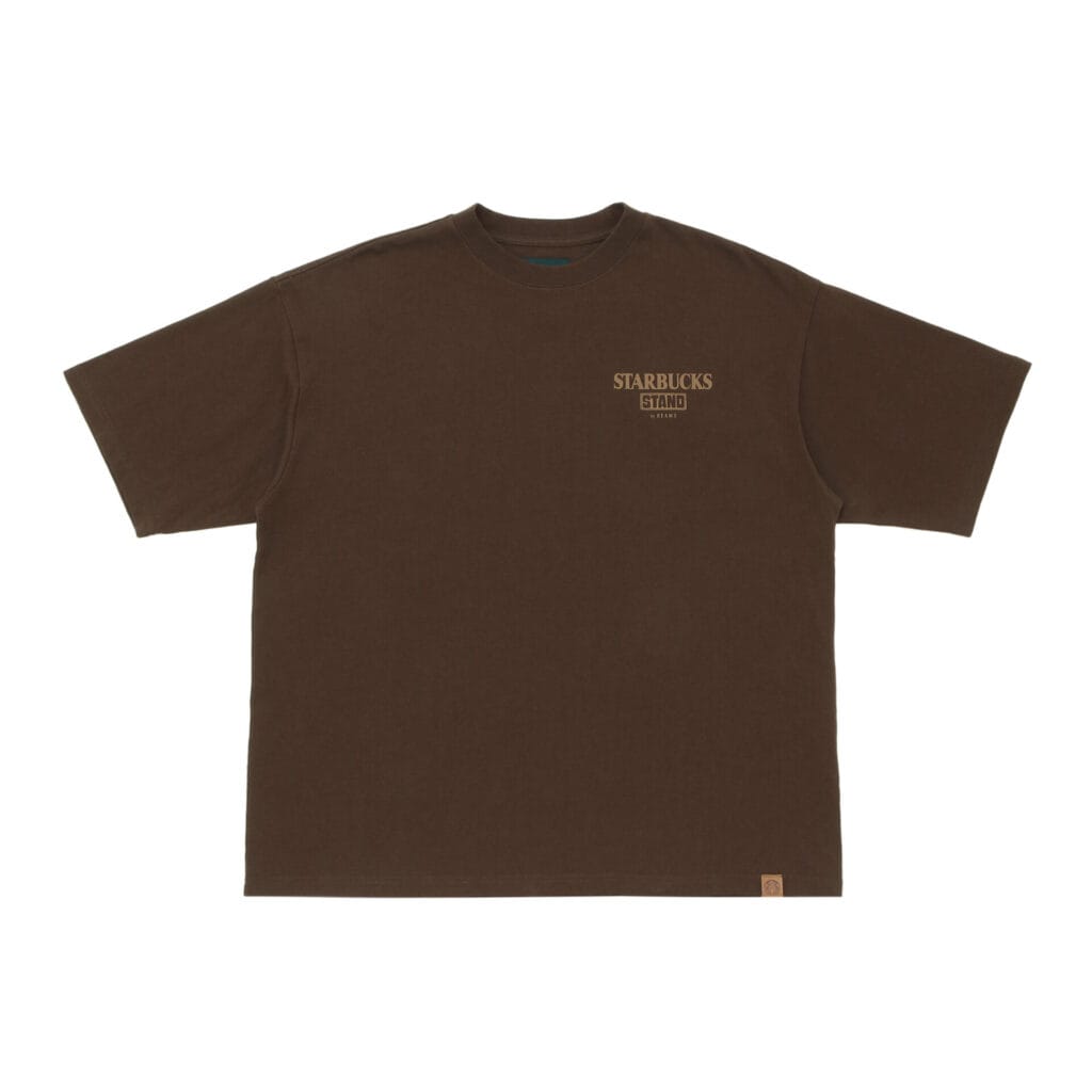 フロントとバックにシンプルな「STARBUCKS STAND by BEAMS」のロゴをあしらったTシャツやスウェットがお目見え。落ち着いたダークグリーンや、今のトレンドにも沿うこっくりとしたブラウンは、大人カジュアルなスタイルにぴったり。