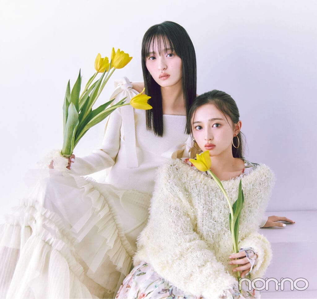 ノンノ4月号のカバーガールは、乃木坂46のエースコンビ、遠藤さくらと井上和。イエロー、ピンク、グリーン、ラベンダー、ブルー。色にまつわるキーワードをベースに、今までのことや最近のこと、そしてこれからの未来のことも。さくらと和が春らしく可憐なトーンに包まれながら、仲よしトーク。