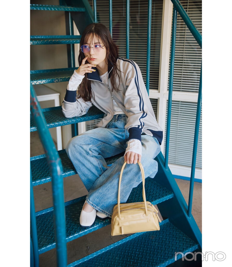 一つ一つのアイテムはトラッドだったりベーシックなものが多いけど、コーデテクでぐっと今っぽく仕上げるあか抜けたスタイルがブーム。日向坂46のエース・小坂菜緒が、そんなシティガールな着こなしに挑戦。