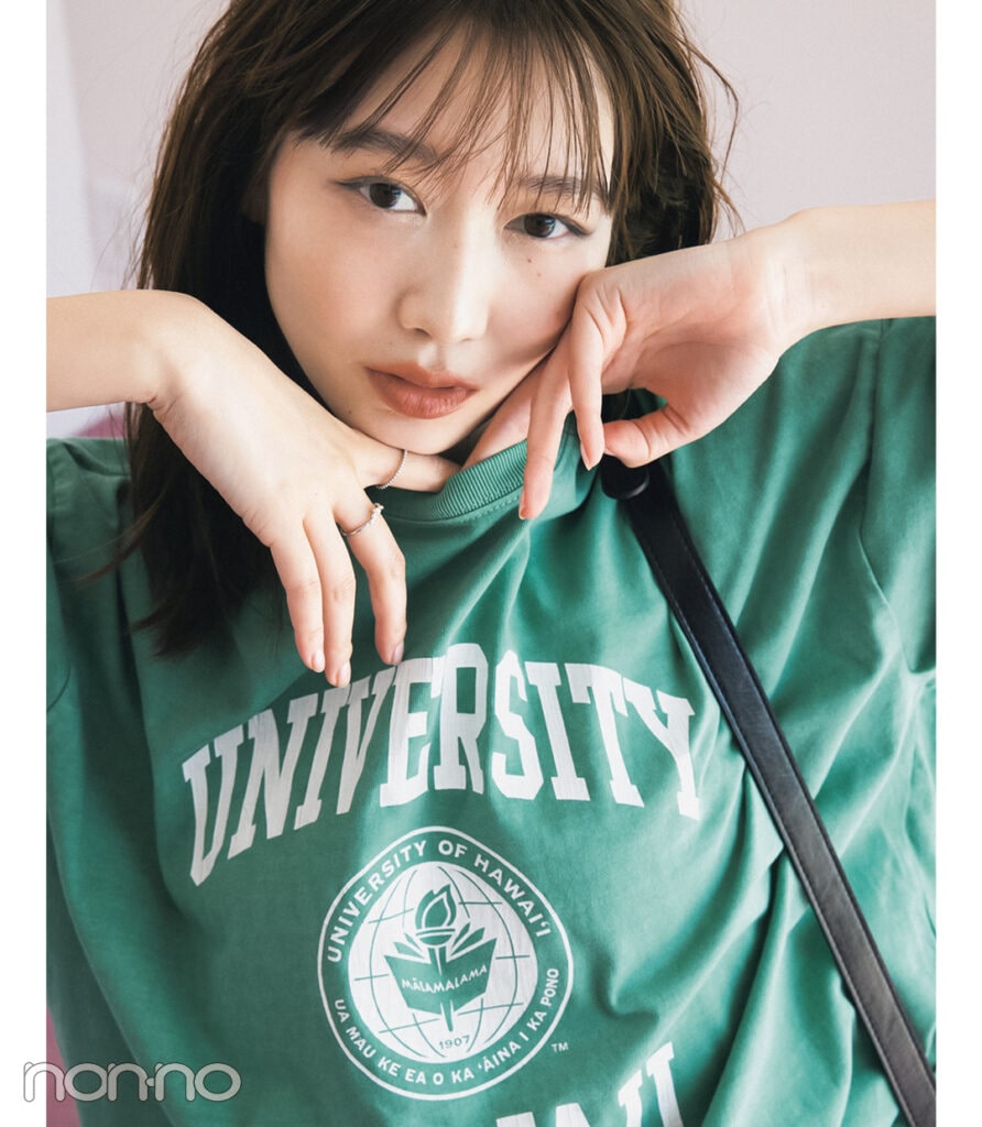 今季ロゴTを狙うならカレッジロゴ一択! トレンド感と肩の力が抜けた雰囲気が欲張りに手に入るよ。