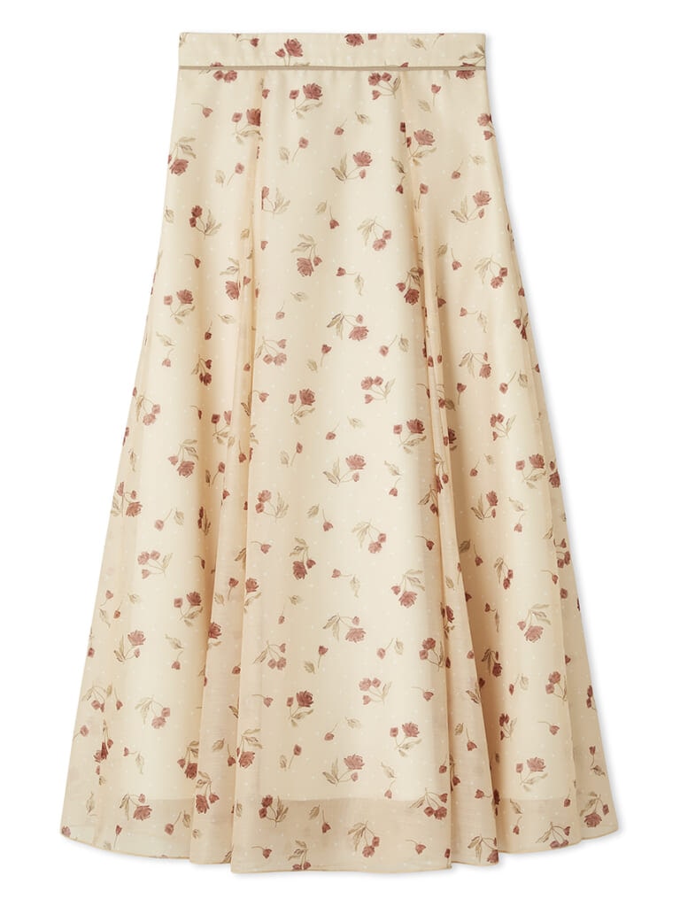 カーディガン¥14960・スカート¥19910/リリー ブラウン シャツ¥63800/レイ ビームス 新宿(ユハン ワン) イヤリング¥2200/サンポークリエイト(アネモネ) バッグ¥17050/ダイアナ 銀座本店(ダイアナ) 靴¥14080/ハルタ 靴下/スタイリスト私物