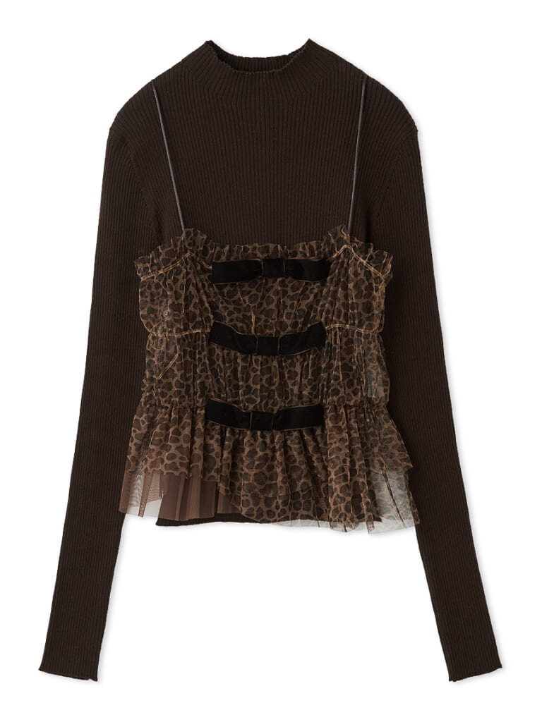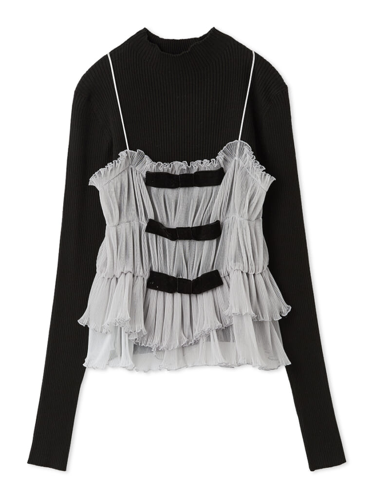 「ベーシックなハイネックニットとフェミニンなリボンつきチュールビスチェがセットになった、着回し力の高いトップスは展示会でひと目見て即オーダー! 今秋はシックだけどちょっぴり甘いコーデを楽しみたい気分です」(編集U)