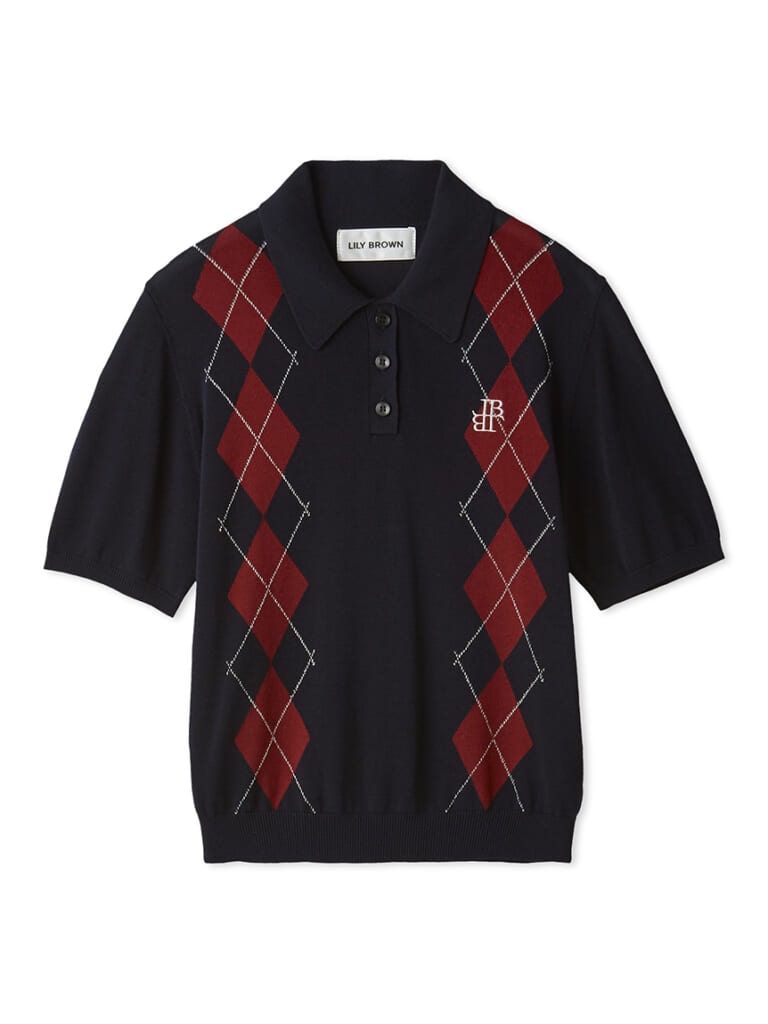 アイビーなムードをまとえるレッド×ネイビーのアーガイル柄カーデ。柔らかなレース地の白シャツや折り目正しいプリーツスカートを合わせた、どこか懐かしさのある"良家の子女"的コーディネートがしっくりくる。