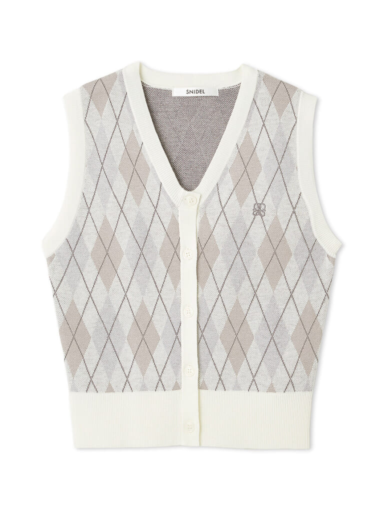 先ほど紹介したカーディガンと同柄のアーガイルベスト。こちらも見逃せない!